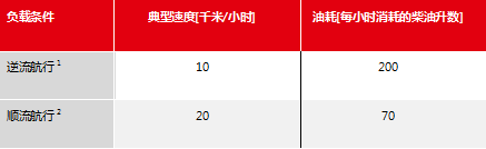 1在顺流及轻载状态下,Goblin号货船将只启动一台发动机,推进器由电驱动系统驱动。这种状态代表了60%的运营状态。