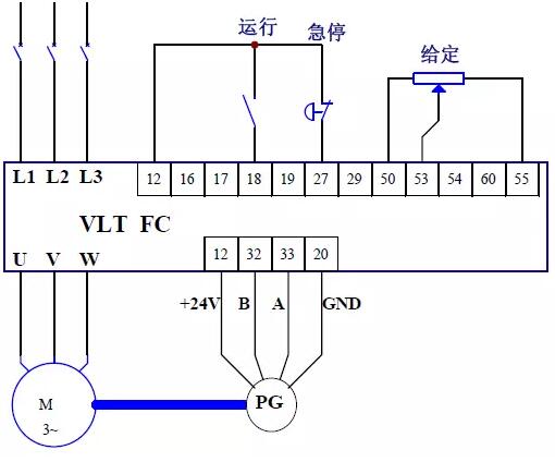如果编码器信号直接接变频器 32、33 端子,请使用 24VDC、推挽电压输出 HTL 逻辑电平 的 A/B 相增量编码器