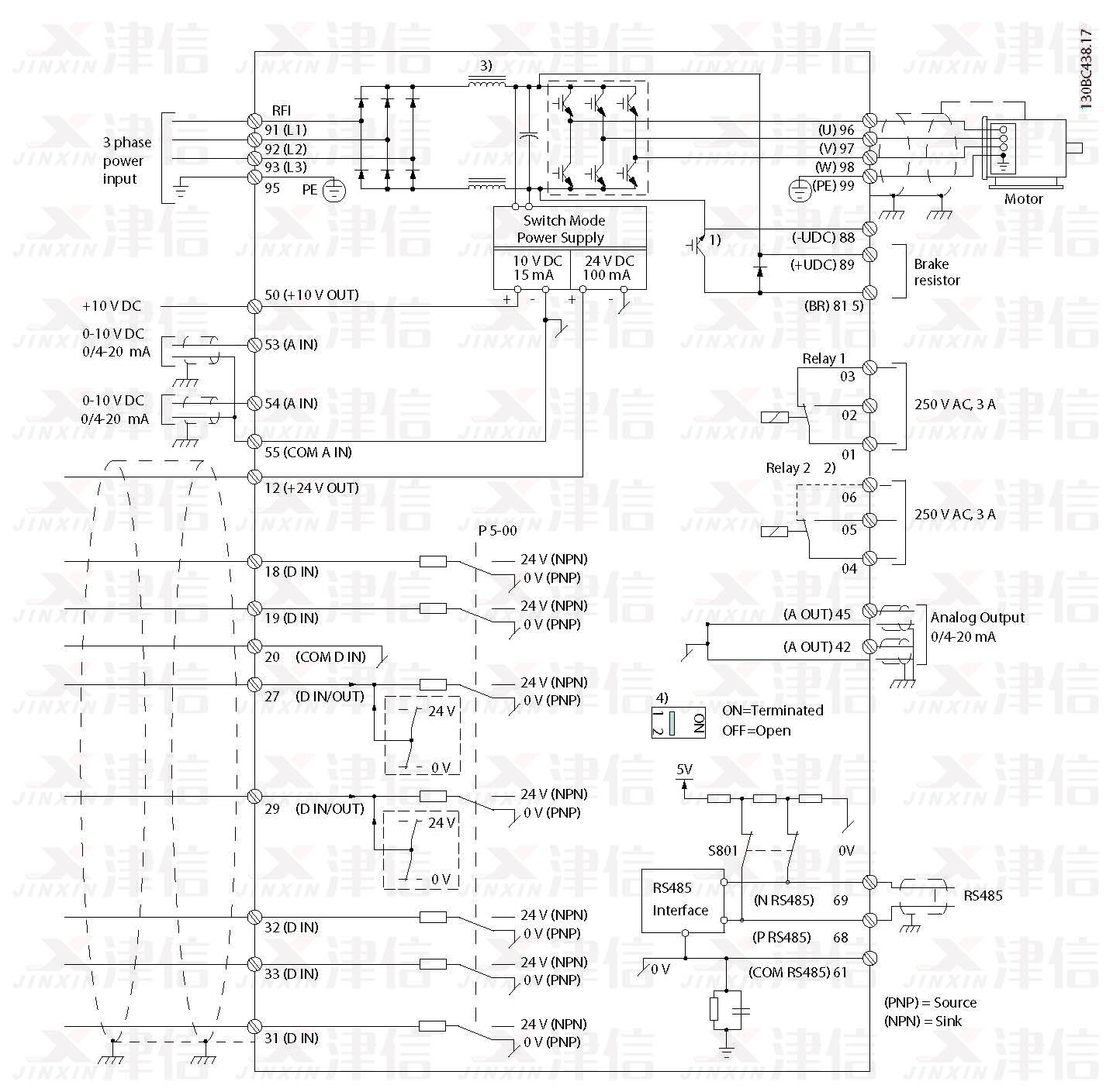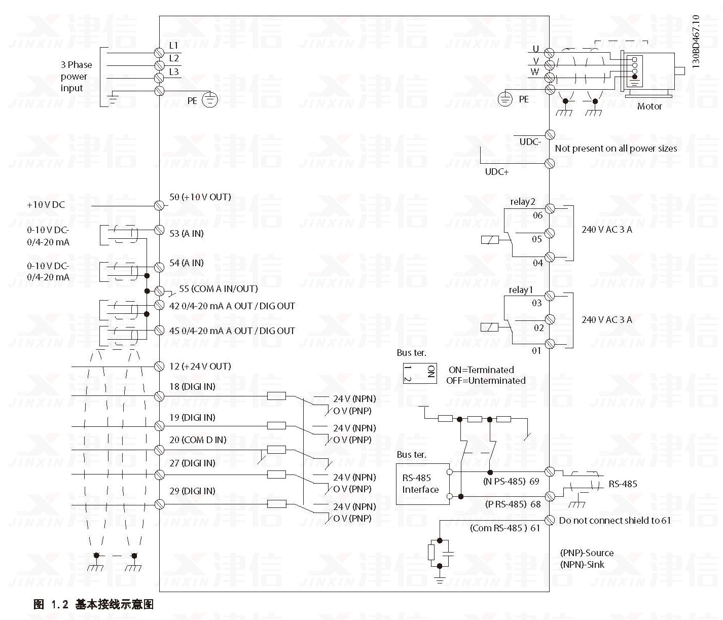 羞羞动漫在线观看采用交-直-交工作原理,先将三相交流电经整流部分变换成直流,经滤波后通过IGBT或其它电力电子器件逆变成频率和电压均可变的三相交流电供电机使用。变频器的基本构成由主电路(包括整流器、中间直流环节、逆变器)和控制电路组成,以下是丹佛斯各系列变频器的接线示意图。