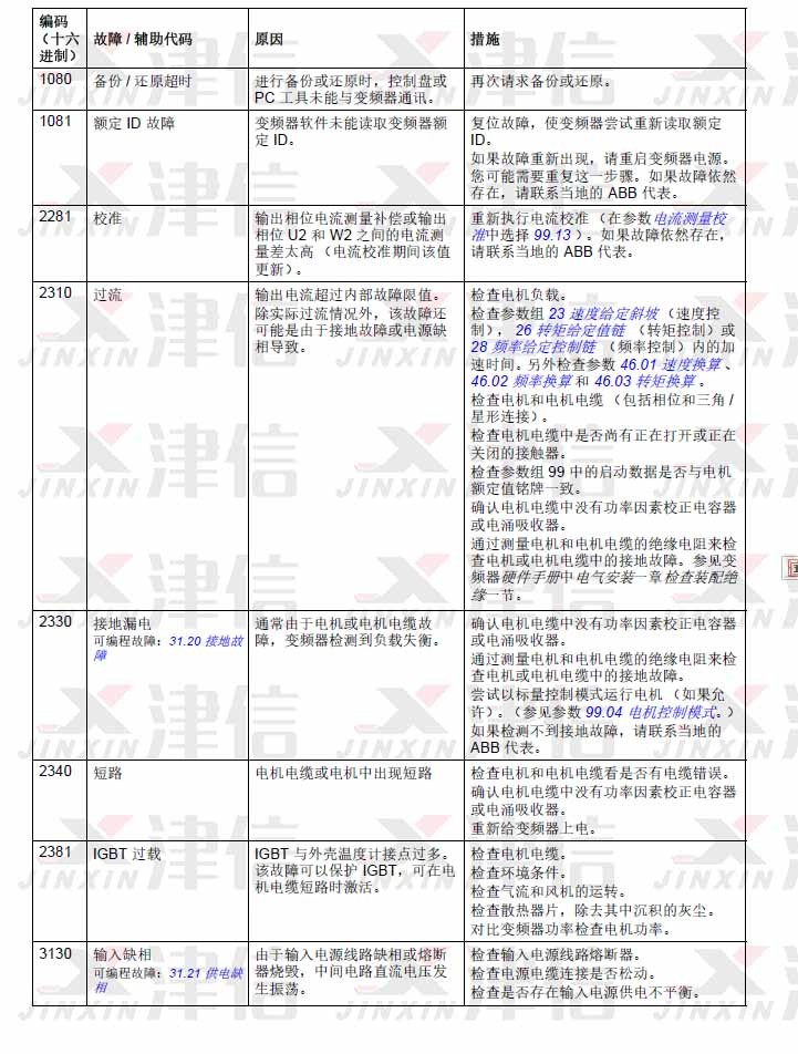 1. ABB ACS580变频器故障代码1080,1081,2281,2310,2330,2340,2381,3130