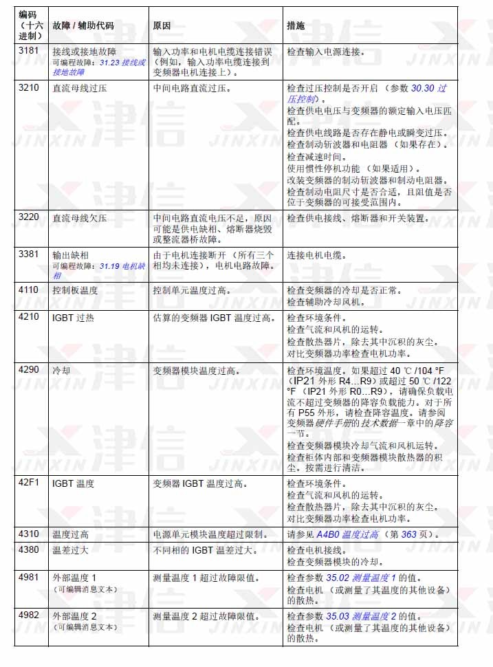1. ABB ACS580变频器故障代码 3181,3210,3220,3381,4110,4210,4290,42F1,4310,4380,4981,4982