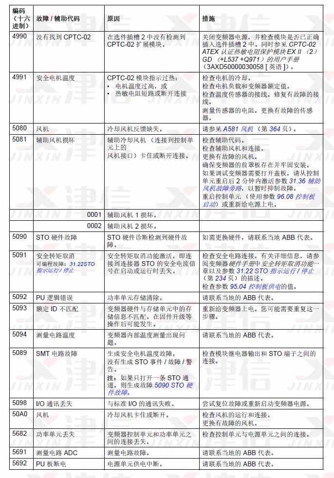 1. ABB ACS580变频器故障代码4990,4991,5080,5081,5090,5091,5092,5093,5094,5089,5098,50A0,5682,5691,5692