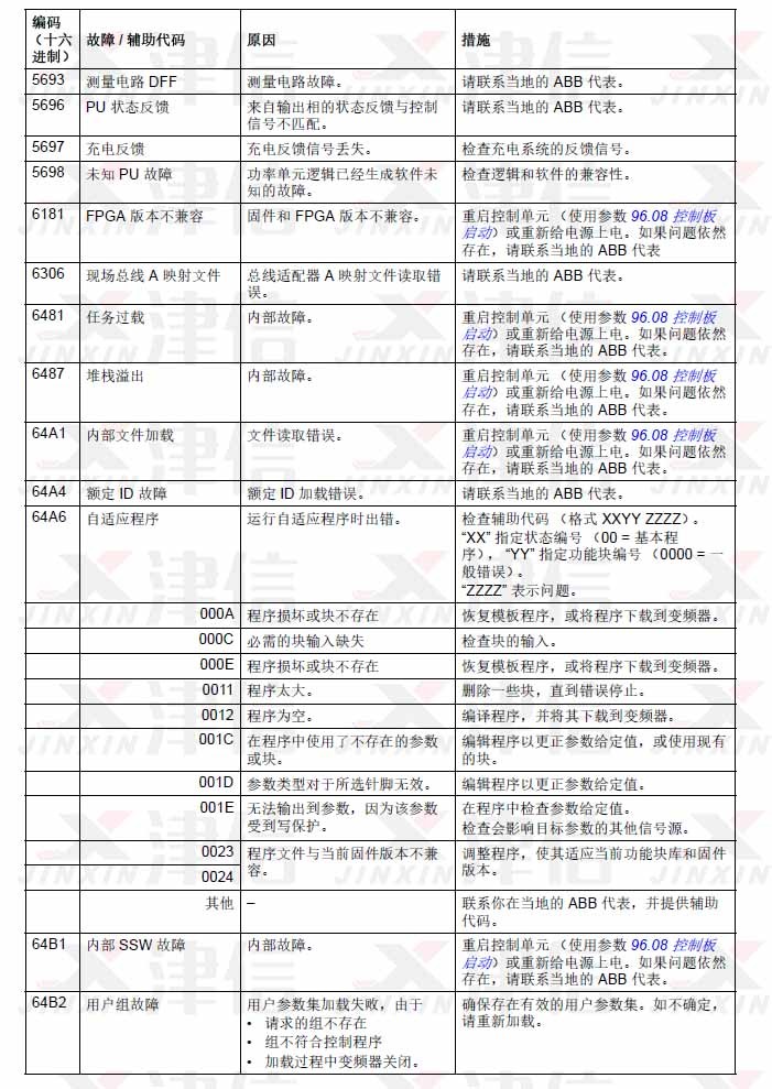 1. ABB ACS580变频器故障代码5693,5696,5698,6181,6306,6481,6487,64A1,64A4,64A6,64B1,64B2