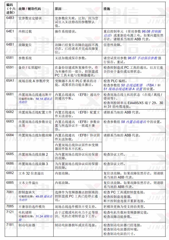 1. ABB ACS580变频器故障代码64B3,64E1,6581,6591,65A1,6681,6682,6683,6684,6685,6686,6882,6885,7081,7085,7121,7181