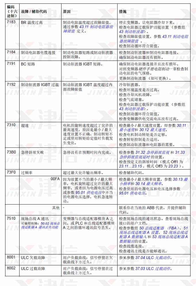 1. ABB ACS580变频器故障代码7183,7184,7191,7192,7310,73B0,73F0,7510,8001,8002