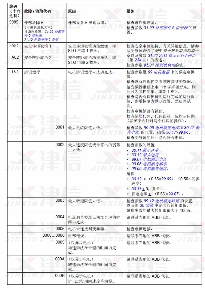 1. ABB ACS580变频器故障代码9085,Fa82,FA83,FF61,FF63,FF81,FF8E