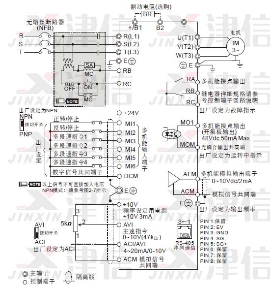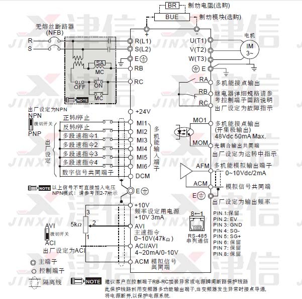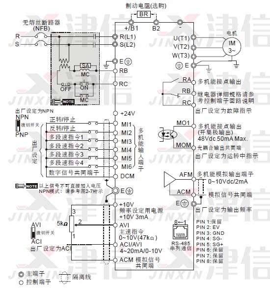 八、台达VFD-E变频器接线注意事项: