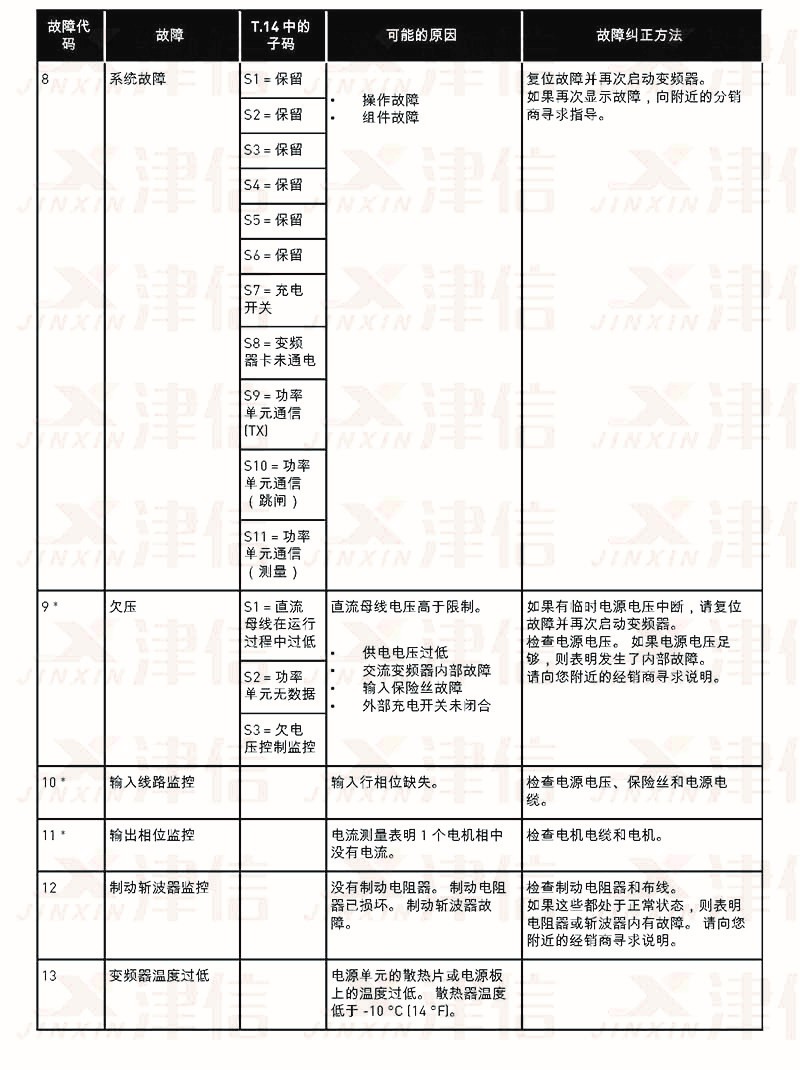 二、伟肯NX变频器故障代码FT8,9,10,11,12,13