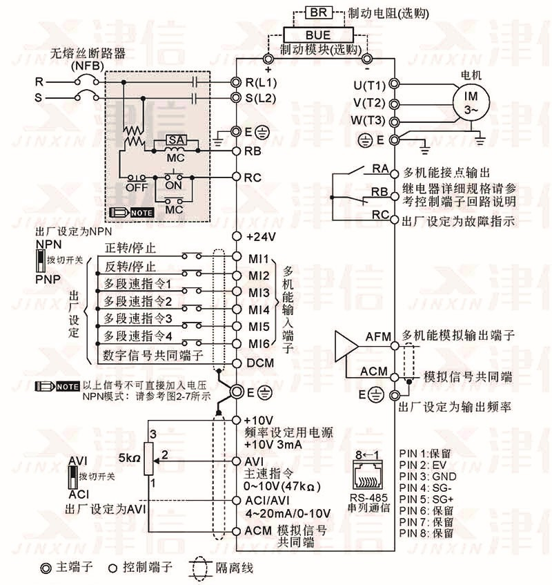 l 控制配线请尽量使用隔离线,端子前的隔离网剥除段请勿露出。