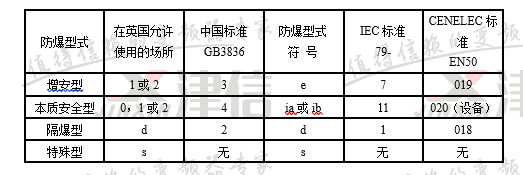 ②气体爆炸危险场所用电气设备防爆类型选型表