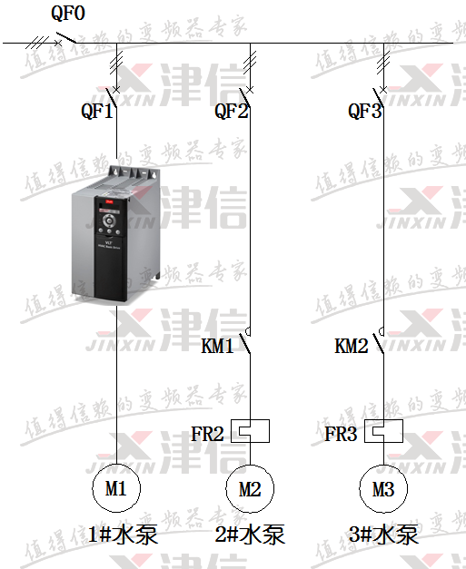 1. 变频器固定控制一台泵