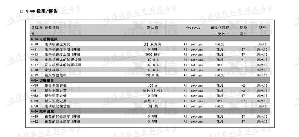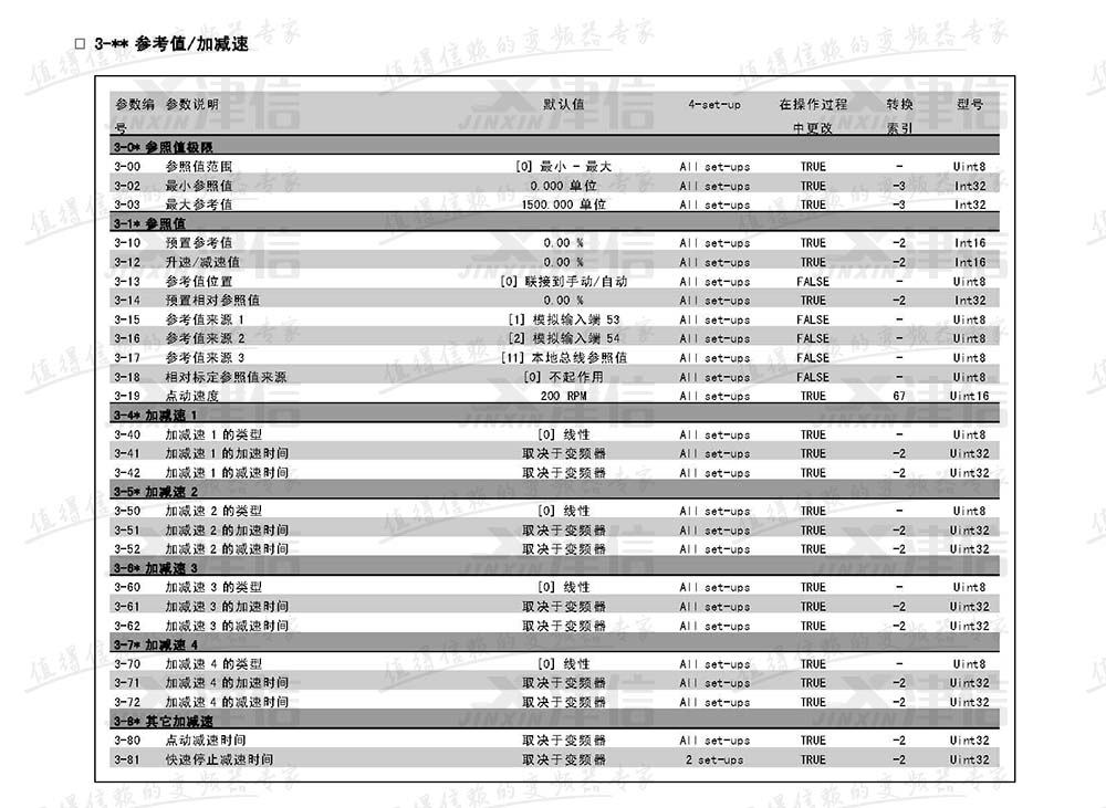 丹佛斯FC300系列变频器是丹佛斯应用非常广泛的一款变频器,在调试过程中,有15组参数需要根据实际应用情况进行设置,具体如下: