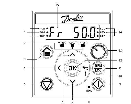 丹佛斯IC2 MICRO变频器是丹佛斯最新推出的一款通用变频器,可以通过面板方便的进行参数设置:
