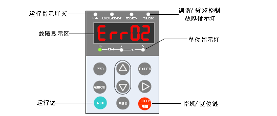 | Err02 | 加速过电流 | 变频器输出回路存在接地或短路 | 排除外围故障,检测电机或接触器是否短路 |