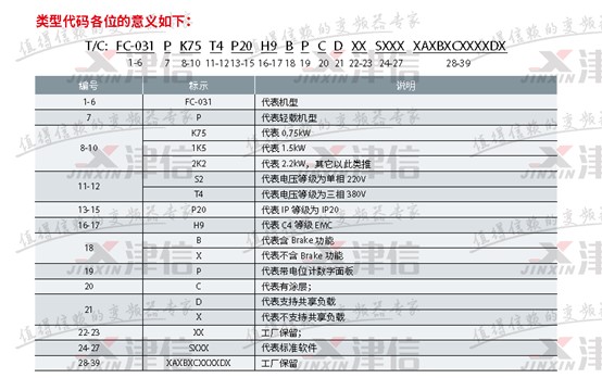 丹佛斯FC31变频器型号描述含义如下