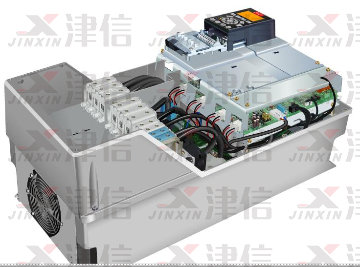丹佛斯FC0302P37K5T5E55变频器功率为37KW,封装等级为I55,该机型拆装比较简单。根据客户的反映情况,检查该变频器。先拆上盖板,可以看到变频器的全部概括(如下图)。依次拆下变频器的图型面板、控制卡、后再拆固定板,可以把电源卡取下。测试电源卡整流模块,逆变模块,电解电容,全部正常。但是送电就显示A33故障。