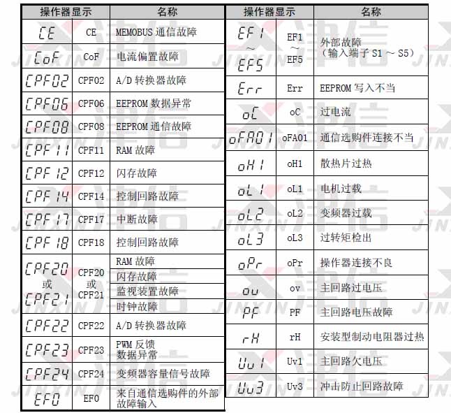 安川变频器在出现故障代码时,一共有三种表现形式: