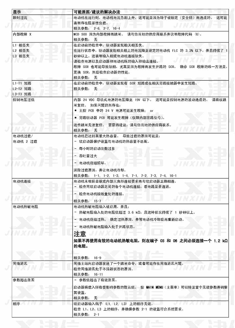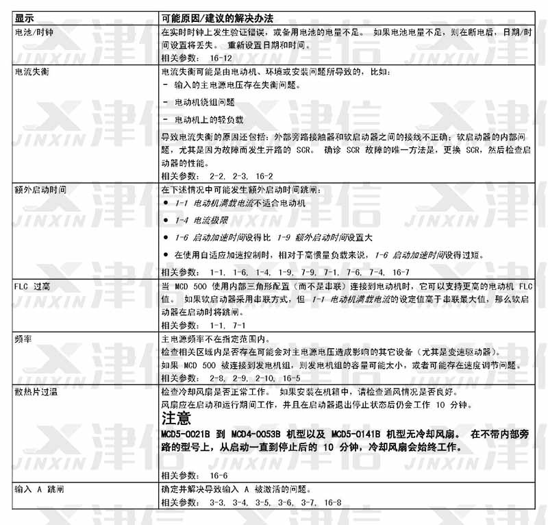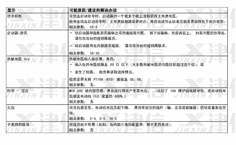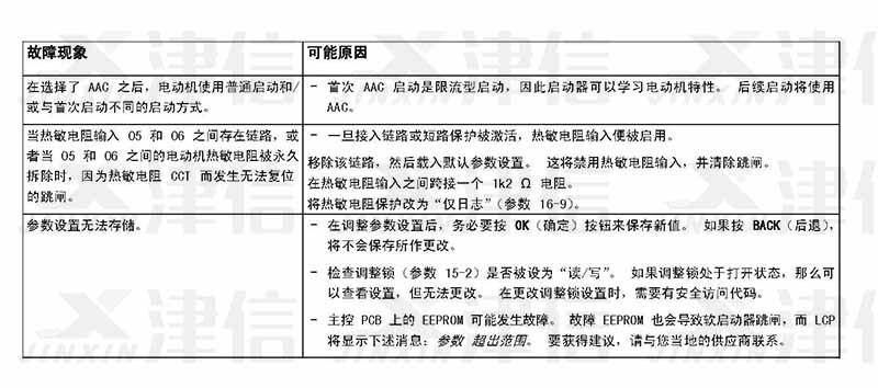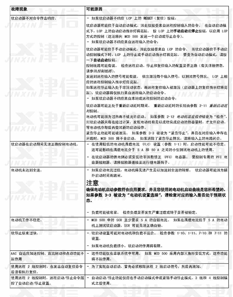 在软启动器使用过程中,如果侦测到故障信息,软启动器会在日志中记录相关信息,还可能跳闸或发出警告。软启动器跳闸后,只有将该软启动器复位才能重新启动。 如果发出警告,则一旦消除了警告原因,软启动器便会自动复位。