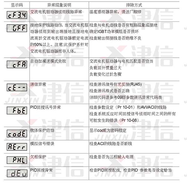 台达vfd-el变频器故障代码和维修措施