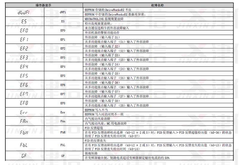 三、dWF1,E5,EF0,EF1,EF2,EF3,EF4,EF5,EF6,EF7,EF8,Err,FAn,FbH,FbL,GF故障代码