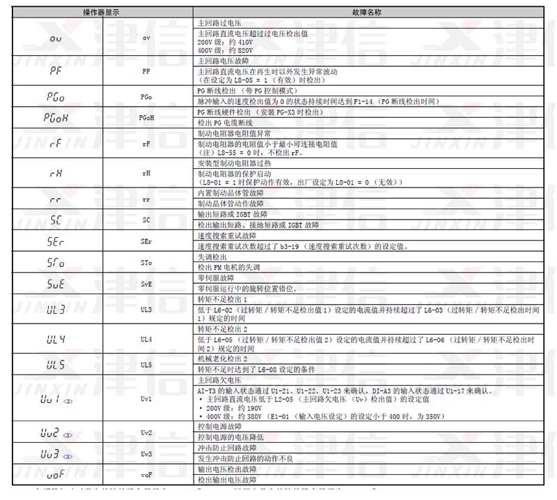 安川A1000变频器故障代码和维修对策