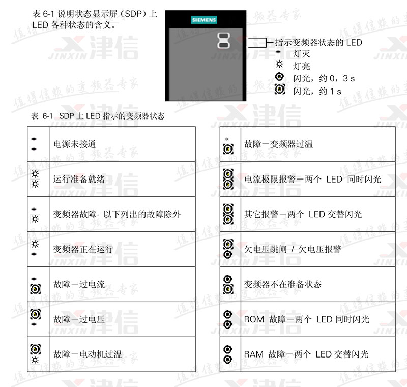 故障值: 1.有些功率部件的测试有故障 2.有些控制板的测试有故障 4.有些功能测试有故障 8.有些 I/O 模块的测试有故障。(仅指 MM 420) 16.上电检测时内部 RAM 有故障 |