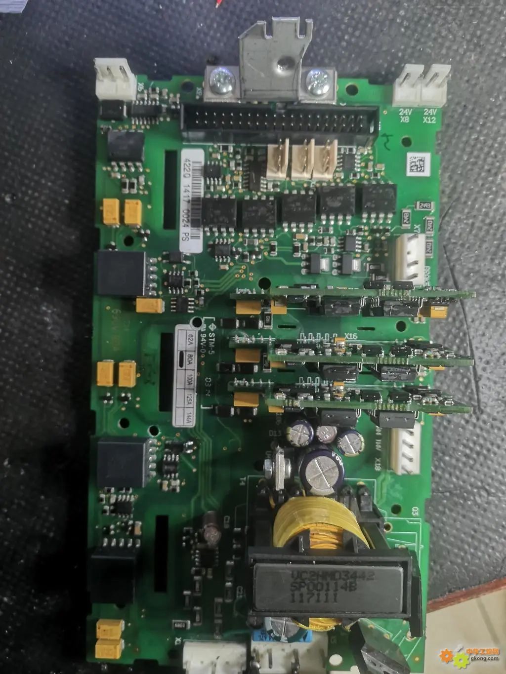 690V的驱动板首先修好电源,才发现次级驱动变压器全部挂了,二次电源修复正常以后,上电马上就跳出一个f7的故障,这个故障的意思是,输出饱和的意思。