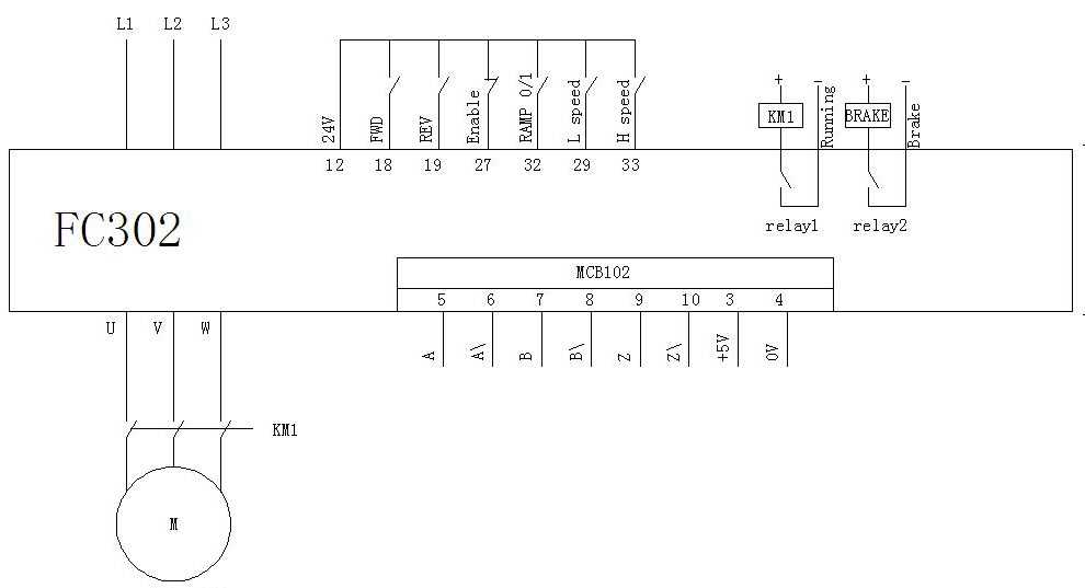 三、    Danfoss  FC302  替代接线图及其参数