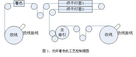 引言:光纤制造行业的一道关键工序就是光纤着色。该工序的工艺质量好坏直接影响光纤产品的质量。该设备控制复杂,包括放线、放线排线、主牵引、收线和收线排线等运动控制以及烘干灯管等附属工艺装置的控制。尤其是对收线排线的平整度要求很高。
