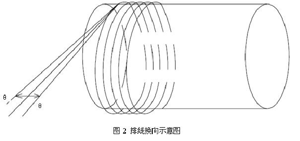 在解决方案中,着重改善收线排线和放线排线的方向切换,如图2所示,在排线到收线盘边缘时,即换向时提高排线伺服速度,从该排线方向的排线成型角度跳转到相反排线方向的排线成型角度,消除了低速换向导致的凸肩现象,使排线平整。
