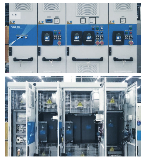 在此机柜中,丹佛斯传动VACON®变频器包含了DC-DC 直流电池驱动器,传统的主推电机驱动器,低谐波AFE前端整流技术,船上日用电源。