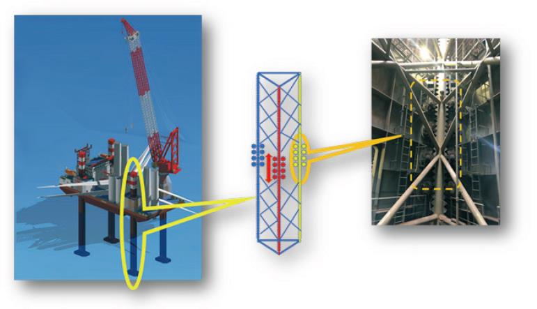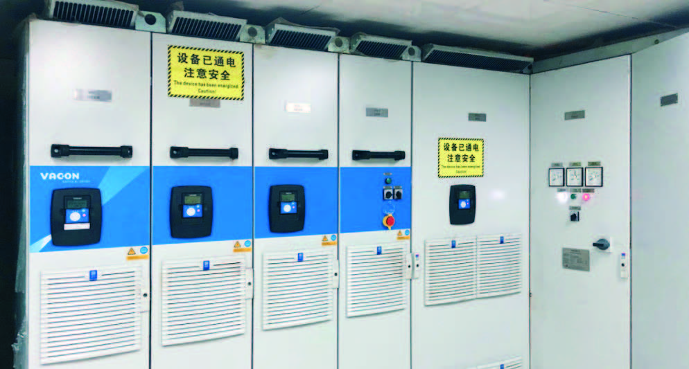平台的关键配置为变频动齿轮齿条升降系统,整个平台共有4个桩腿,可以自由上下升降,并且需要根据实际工况随时调节三边钢结构舷的应力。整个平台的重量都承受在4个桩腿上,因此对于启动时候的电机力矩有很高的要求。因此公司采用Danfoss VACON® NXPCommon DC Bus System系列共直流母线驱动产品作为抬升系统的电气驱动使用。